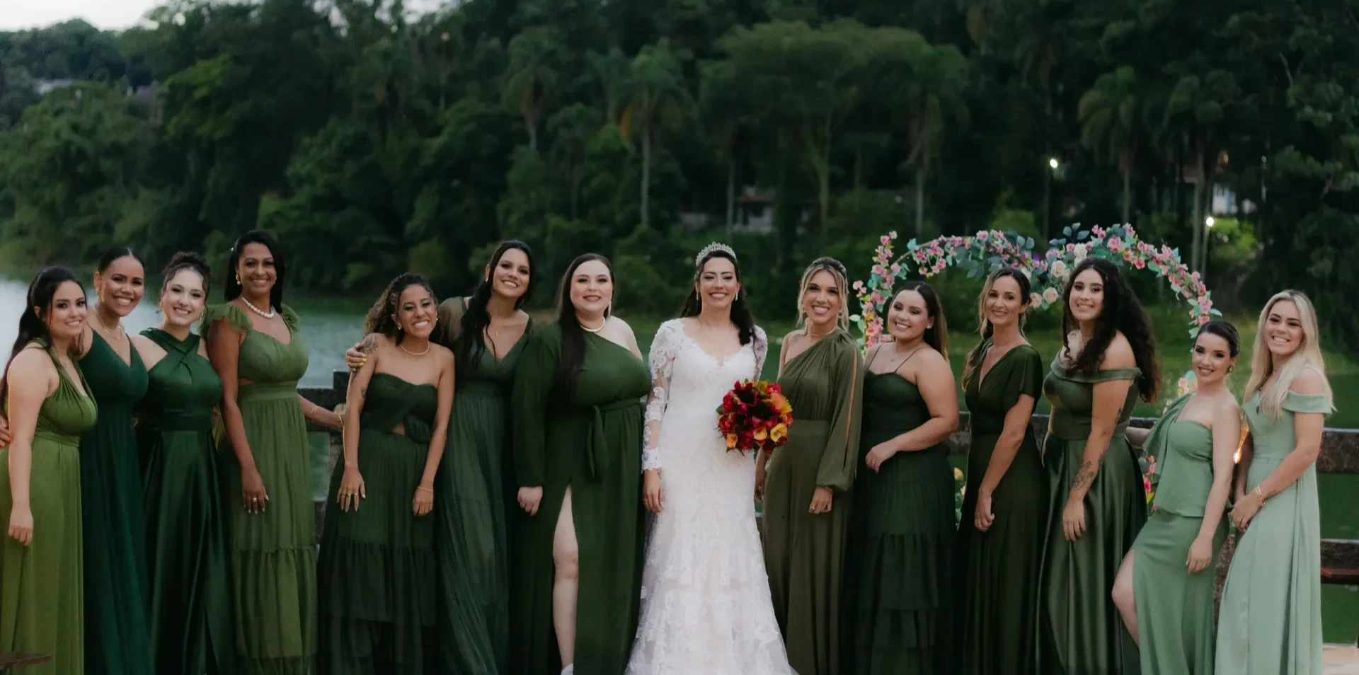 Orientação privilegiada ao sol, garantindo reflexo dourado da represa na cerimônia.